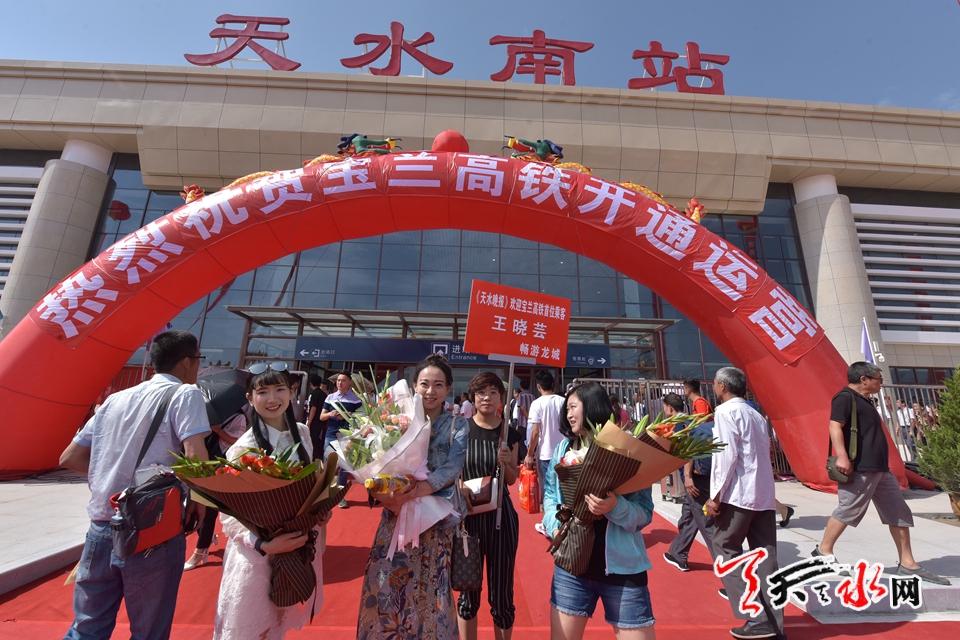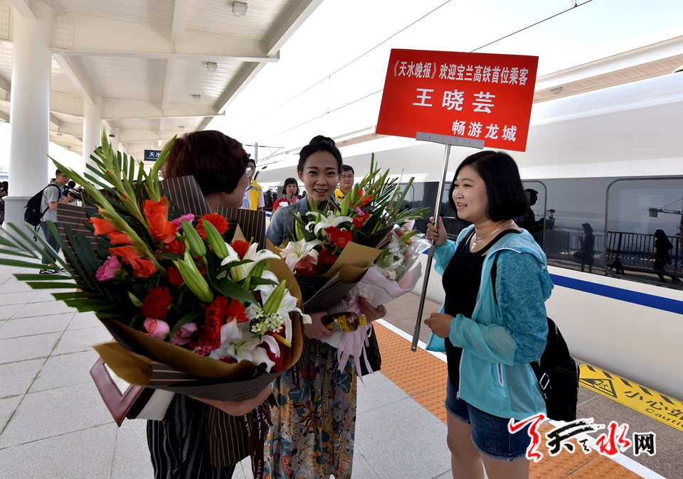 7月9日,9时45分,首位购得宝兰高铁第一张车票的王晓芸女士搭乘的D2654次动车在天水南站完成了她的速度之旅。