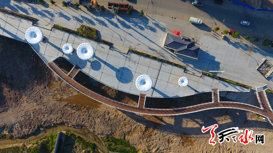 据了解,天水藉河生态公园人行景观桥从2015年12月开始施工,桥长450多米,整座桥由主桥、北侧辅道、南侧辅道、栈道及栈道通道部分组成。桥体设计超前、构思精巧,集艺术性、观赏性、实用性于一体,将自然景观、人文景观与城市景观完美融合,塑造了一个人、水、景交融互存的场景。整座桥横跨藉河南北两岸,把位于藉河两岸的公园连接在了一起,其优美的造型也成了藉河上的一处新景观。