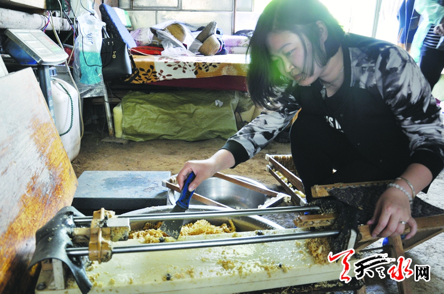 中午12点,应中都他们临时居住的小屋内正忙得热火朝天。他的妻子在整理王浆条,两个徒弟则在挖浆。