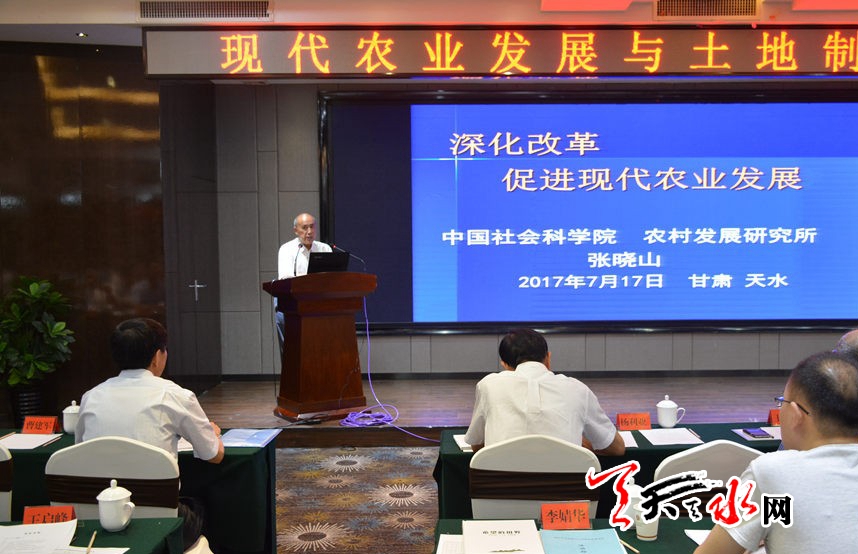 天天天水网讯【记者徐媛】7月17日,由省三农问题研究会、天水现代农业发展协调推进领导小组办公室等单位联合举办的现代农业发展与土地制度改革论坛在我市召开。省政府参事、省政协副秘书长杨利亚,省农牧厅总经济师梁仲科,副市长程伟东出席论坛。
