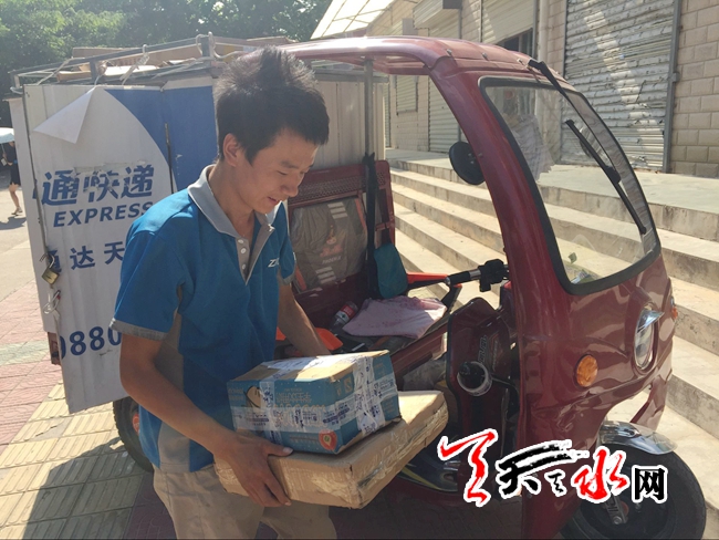 小朱告诉记者,他负责的是中通快递从秦州区五里铺陇上尊裕到国税大厦这一片的快递。每天早上九点就是他一天忙碌生活的开始,下午八点半才能下班。