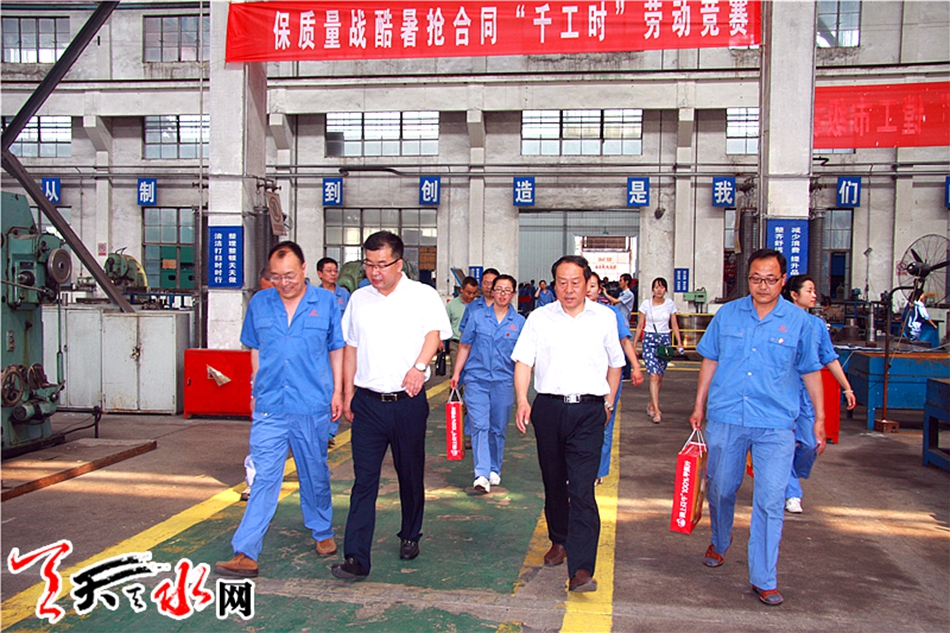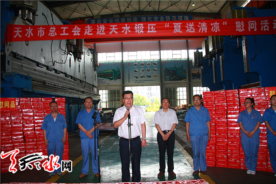 天天天水网讯(记者 胡丽霞)7月20日,天水市委常委、组织部长王正茂带领市总工会相关负责人一行,深入天水锻压机床有限公司,看望慰问工作在高温车间的工人,并向他们送去了防暑降温慰问礼包。这标志着今年全市工会夏送清凉活动正式启动。