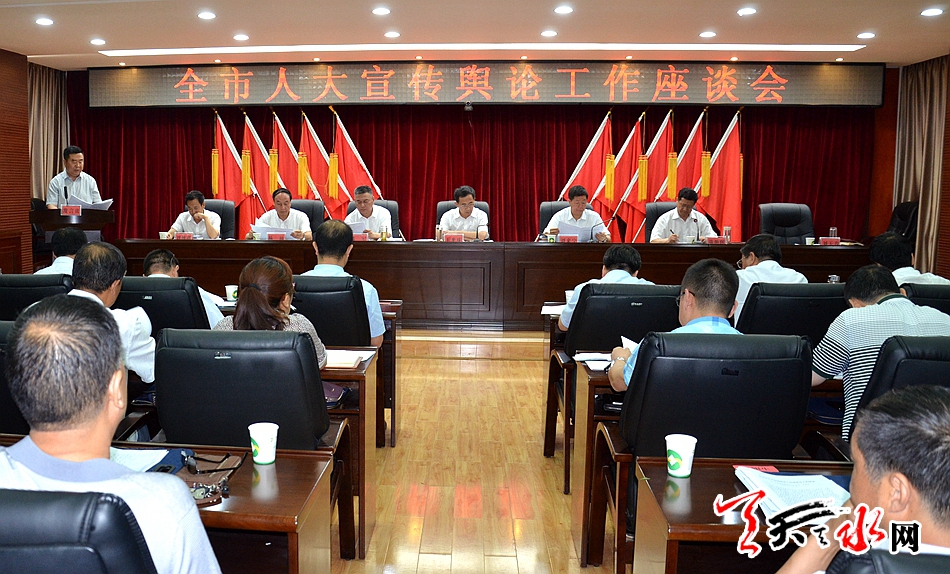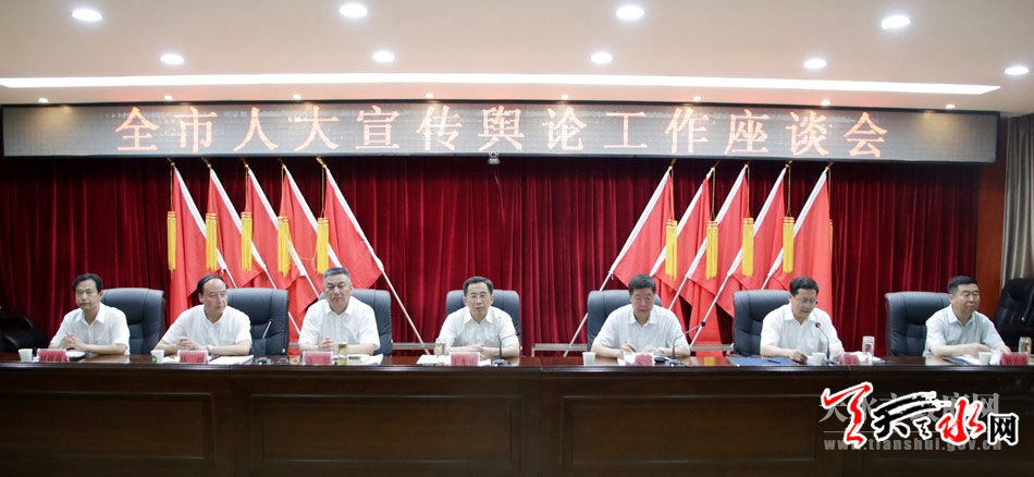 天天天水网讯【全媒体记者马放】7月20日,全市人大宣传舆论工作座谈会召开。会议学习贯彻了习近平总书记关于坚持和完善人民代表大会制度、加强社会主义民主政治建设提出的一系列新思想新举措新要求,全面贯彻省第十三次党代会精神,总结交流了全市人大宣传舆论工作经验,安排部署下阶段人大宣传舆论工作。