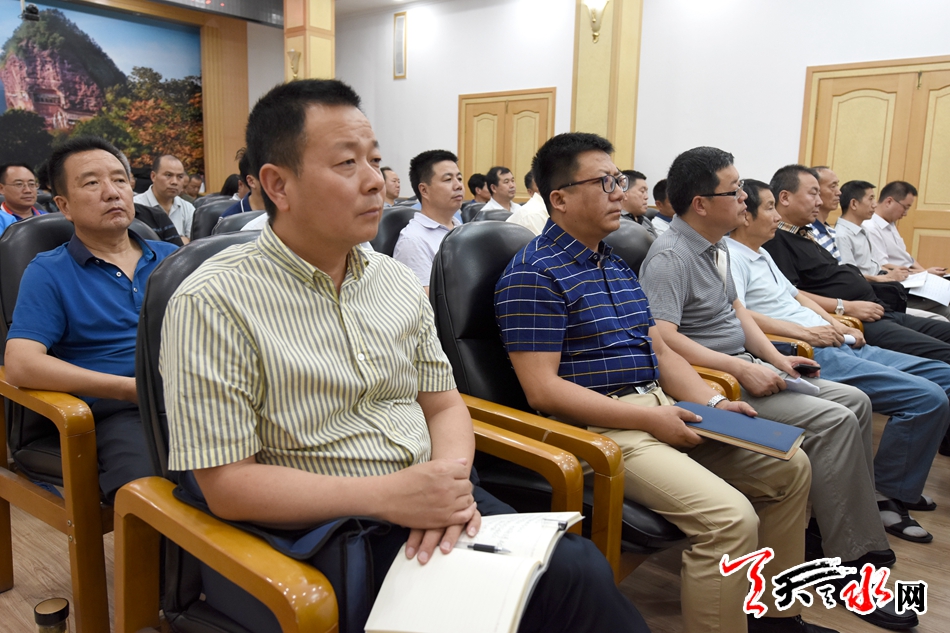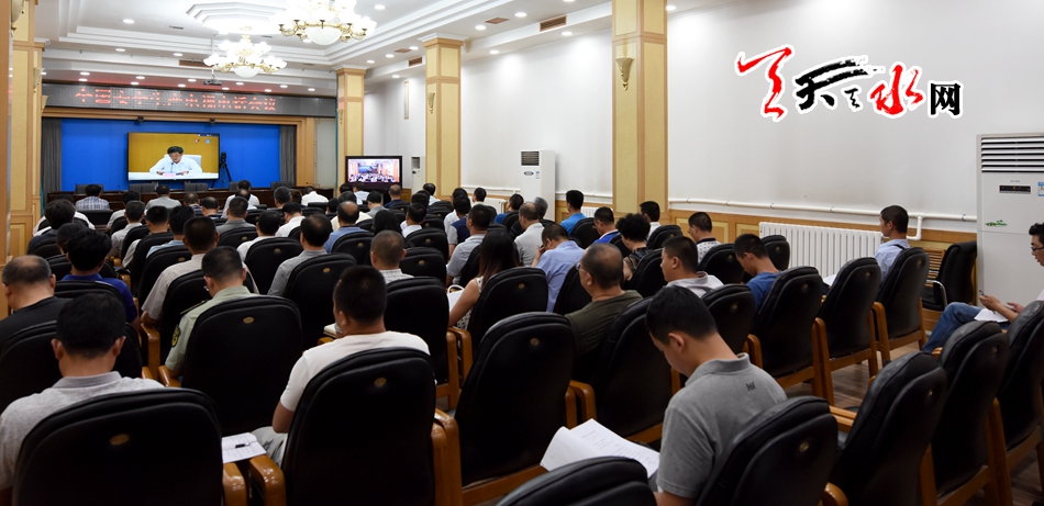 市领导王军、蒋晓强、郝文杰在天水分会场收听收看会议。