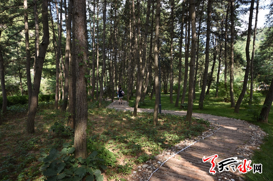 这位负责人介绍,会址在景观设计中不砍一棵树、不改变原有地形,在保证原有风貌的基础上进一步优化提升园区小环境。同时,针对西北地区水资源缺乏的特点,在节水节能方面,会址内采用中水循环系统、雨水回收系统、景观水循环、透水路面等一系列保水及再利用措施。在能源供给方面,采用电力为主、油气混合为辅的清洁能源系统,并通过智能化管理减少能源消耗。在植物配置方面,选用天水本地常见的树种,景观材料选用天水当地的毛石、乱石、松枝等作为挡墙、水池、栈道的材料,既质朴生动,又经济耐用。