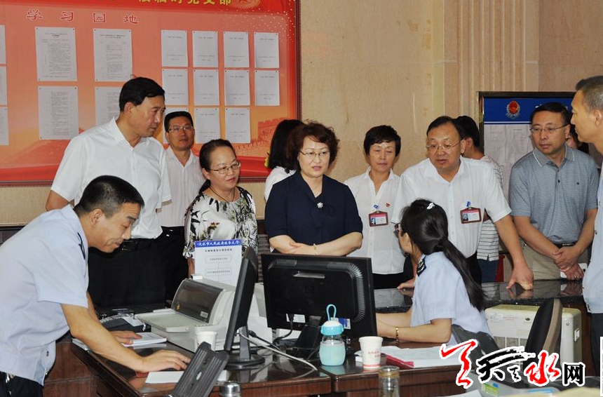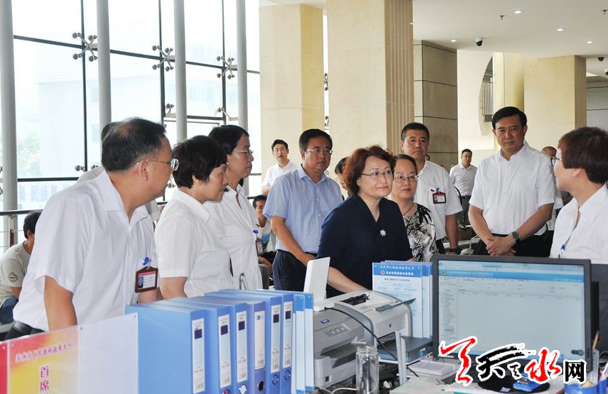 天天天水网讯【记者马凯】7月24日,国务院第四次大督查第十八组“放管服”改革专题督查组组长、国家统计局贸易外经统计司副司长冶静怡带领督查组,督查指导我市政务大厅“放管服”改革工作。市委常委、常务副市长赵卫东一同督查。