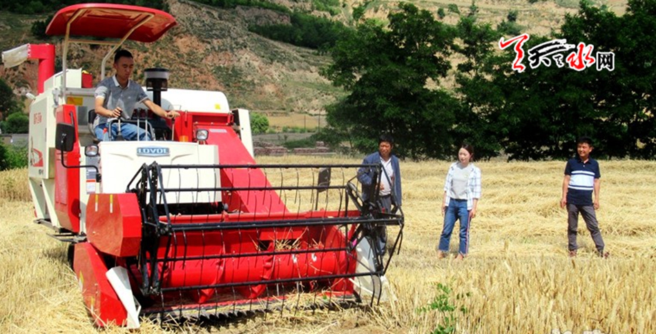 7月19日,在秦州区秦岭镇中心村村民马武学承包的小麦地,收割机来回穿梭,转眼功夫,收割机满载而来,1000多斤小麦从收割机舱里倾泻而出,直接淌进拖拉机舱。马武学看着这一粒粒饱满的麦粒,笑着说:“今年光景好,雨水足,日晒够,麦子自然会大丰收了。”