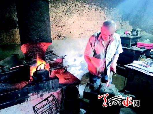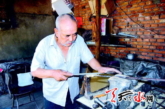 身为兵器收藏爱好者的周先生告诉记者,目前武山境内十里八乡之间会铸锻的工匠虽多,会做兵器的也不少,但像贾元德这么技艺精湛的却不多见。平日里,不论是多难做的工艺,只要是让贾元德看看,他便能给做出来。不过老人一直孤身一人,所以也有几分怪脾气,那就是对于慕名而来定做兵器的顾客,遇到投缘的人,即便是价格便宜一些他也乐意做,如若不投缘,任凭你出再高的价格他也不会做。