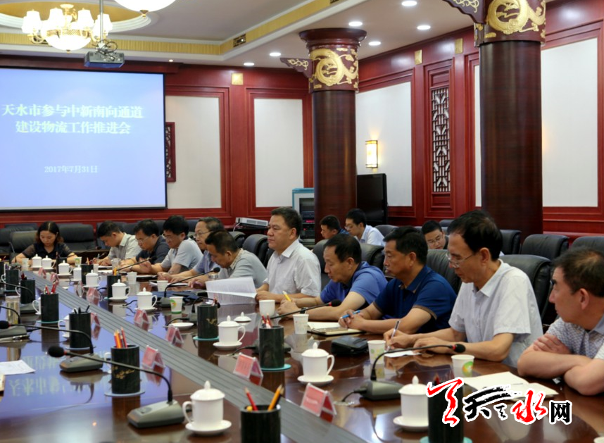 天天天水网讯【记者陈娟】为贯彻我省参与中新南向通道建设物流工作对接座谈会精神,7月31日,我市召开参与中新南向通道建设物流工作推进会,就我市参与工作作了专题研究和安排部署。市委常委、常务副市长赵卫东出席会议。