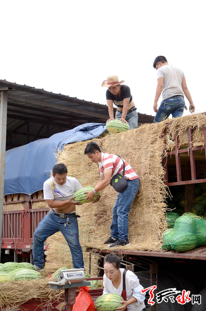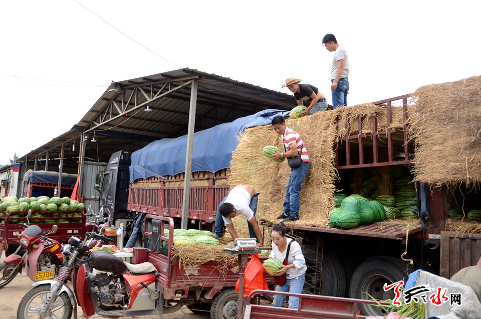 任师傅是一位多年搞果品贩运的农民,他刚从新疆贩来一车33吨西瓜。“今年外地西瓜抢手,价格也高,这一趟下来很有赚头。”任师傅说,他像候鸟一样,每年这个季节去新疆贩运西瓜,长途转辗跋涉几千公里,就是因为新疆瓜品质好,个大瓤甜,皮厚耐储存,很受天水人的青睐。
