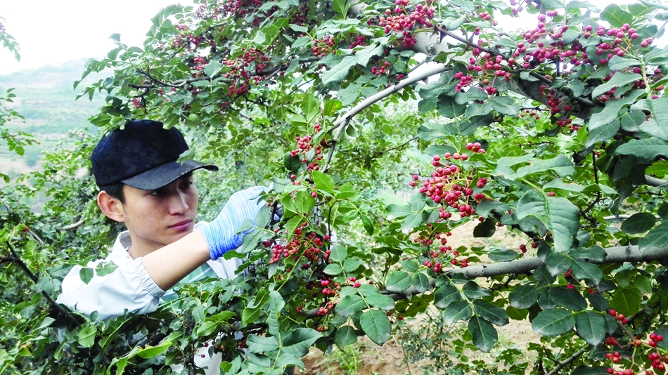 8月,正是天水花椒成熟的时节,走进麦积元龙、秦安王窑等花椒种植乡镇,站在山顶放眼望去,一团团、一簇簇红彤彤的花椒缀满枝头,山间沟岔、层层梯田间人们正在忙着采摘花椒;山村平房顶上、院外场上随处可见晾晒花椒的场景。山风拂面,一股股浓郁的椒香扑鼻而来。