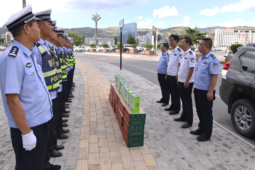 天水市公安局和交警支队领导深入基层大队勤务一线,现场检查各大队落实省公安厅近期下发的三个通告精神、整治“六类”重点车辆、开展严查严惩严重交通违法专项行动等工作情况,详细了解勤务安排和执勤民警身体状况,并为他们送去了饮品、茶叶等防暑降温慰问品。