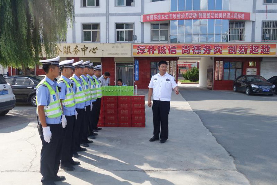 检查慰问中,带队领导表示,入夏以来,全市连续高温,在炎热的天气条件下广大交通民警忠于职守,顶烈日、战酷暑,付出了很大的辛苦,为确保暑期道路交通安全做出了大量工作,展示交警队伍良好形象和精神风貌。各大队要科学布控警力,抓好近期各项重点工作;要加强对民警自身安全防护意识教育,确保民警自身安全。