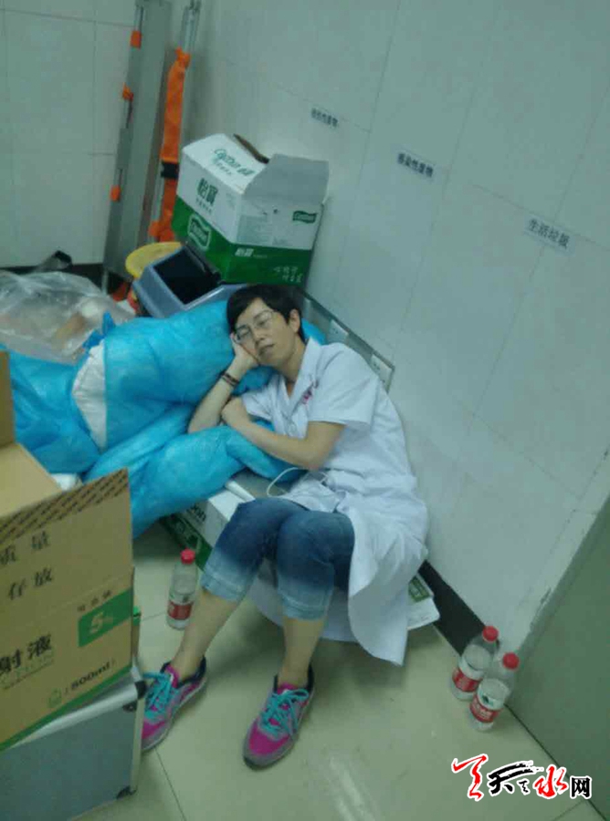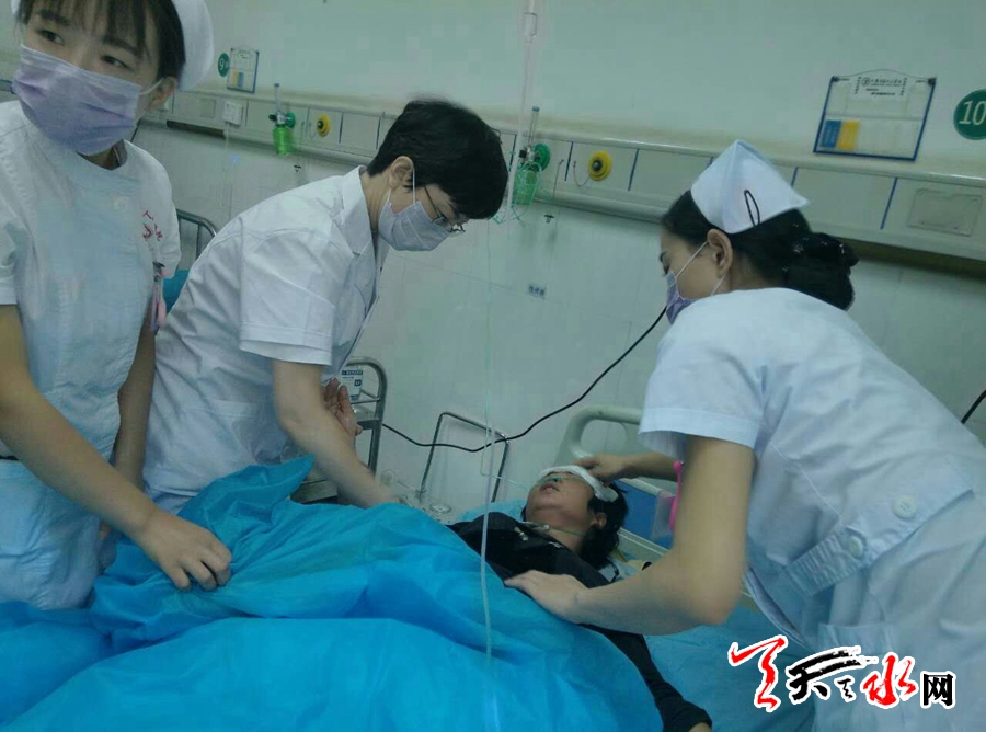 8月10日,记者在天水市中医院采访时了解到,该院正在文县下乡的护理部副主任邓小燕,主动报名赶赴灾区,为灾区群众进行医疗救助。
