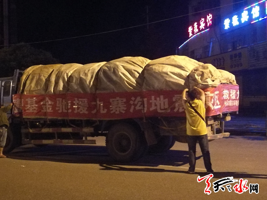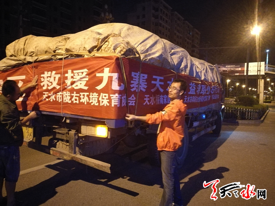 8月8日23时,天水公益者联盟的3家成员机构(天水市陇右环境保育协会、天水市和雨东社会矛盾化解工作室、天水晨曦爱心公益协会)和天水桥南家居建材城的20多名工作人员和志愿者开始装运救灾物资,并于8月9日凌晨2时将物资运往灾区。据了解,此次运往九寨沟的物资为折叠床300张,12平米的帐篷40顶,36平米的帐篷10顶。