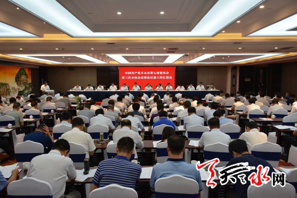 天天天水网讯【全媒体记者 王晓馨】8月11日,中国共产党天水市第七届委员会第三次全体会议暨县区委工作汇报会召开。会议深入学习贯彻省部级主要领导干部“学习习近平总书记重要讲话精神,迎接党的十九大”专题研讨班和省委十三届二次全体会议精神,听取各县区工作汇报,总结全市上半年经济社会发展情况,安排部署下半年工作。