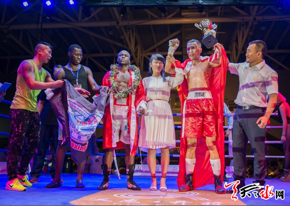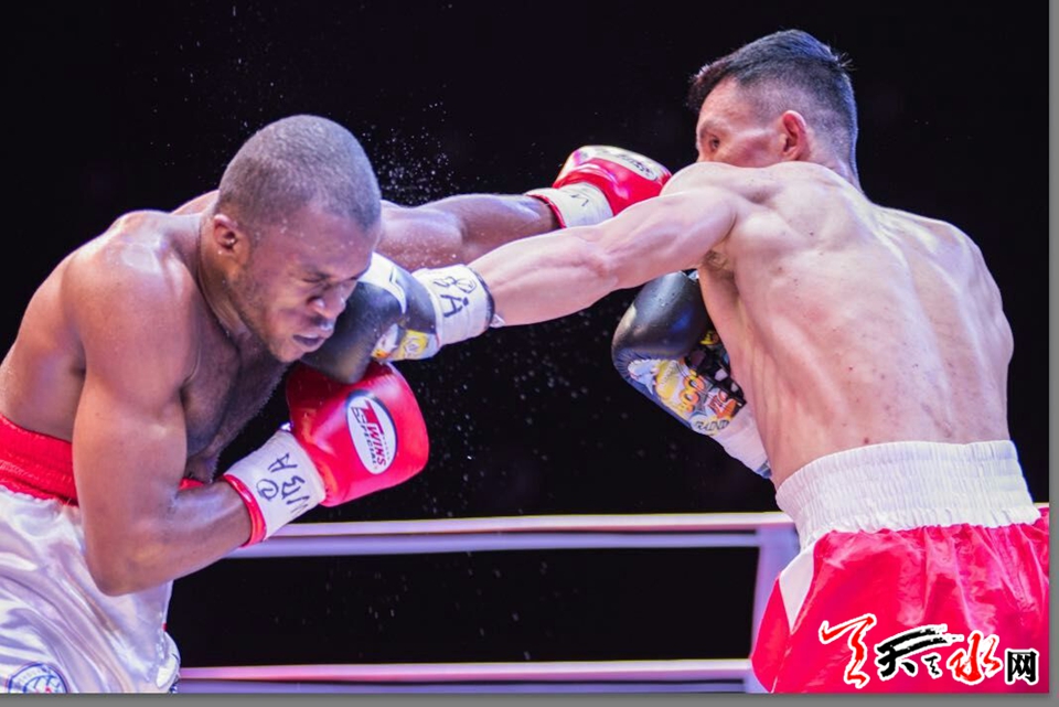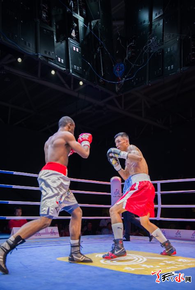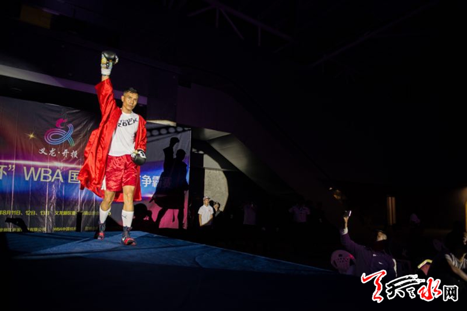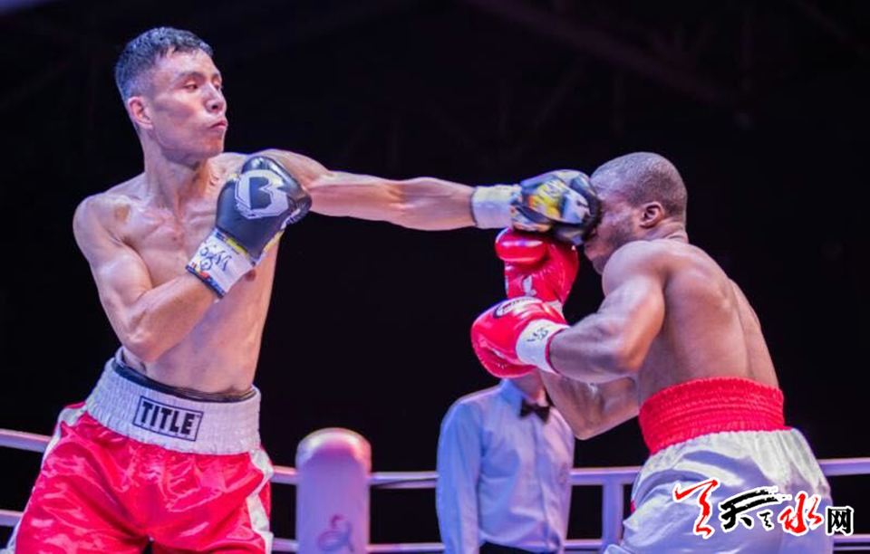 天天天水网讯(记者何永德)8月11日,首次登陆贵州义龙新区的WBA中国职业拳击排名赛拉开战幕,天水藉洲际拳王张永,在当晚最后的压轴主赛中,经过六个回合的较量,力克年轻的刚果拳手,完成了他回国后的首场比赛。