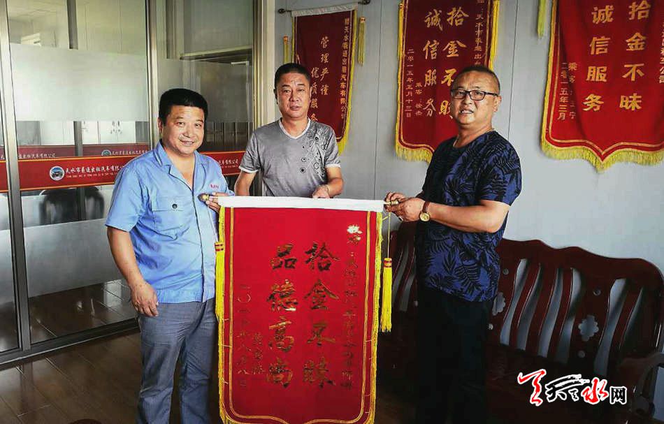 天天天水网讯(记者 张文都)8月11日上午,天水市运管局法规宣传科来了一名出租车司机,陪同他来的还有羲通出租车公司的工作人员。该工作人员一进办公室就给运管局人员介绍,出租车司机是他们公司拾金不昧的驾驶员曹文海。