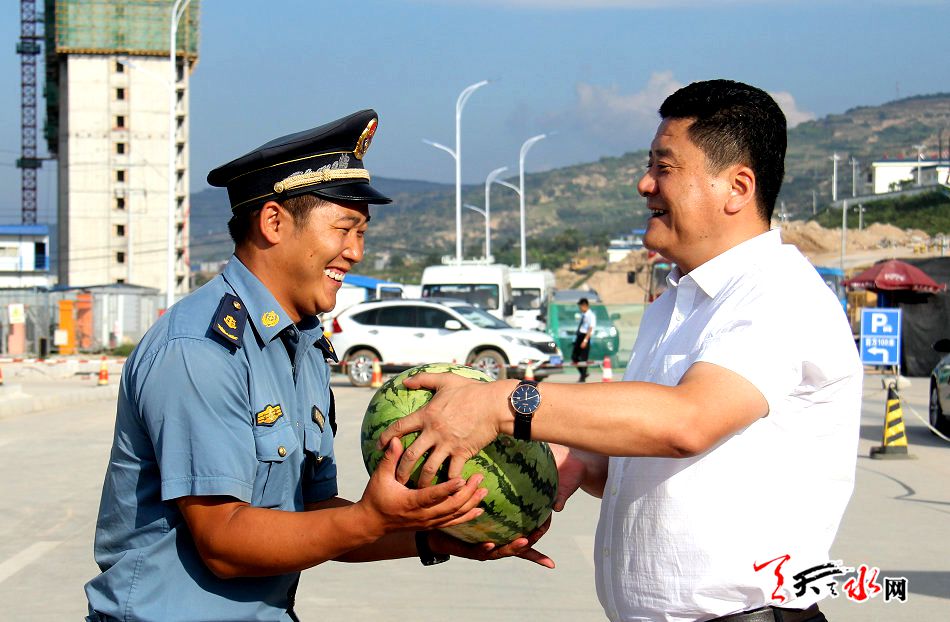 天天天水网讯【记者 张文都】八月的天水,虽然秋意渐浓,但“秋老虎”的天气还是让人感觉到一些燥热。8月14日,天水市运管局相关负责人对高温天气下坚守岗位、奋战在道路运输保障一线的运政执法人员进行了慰问。