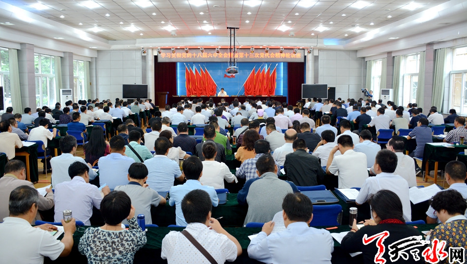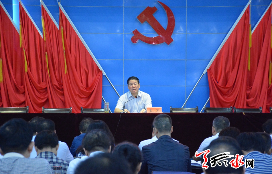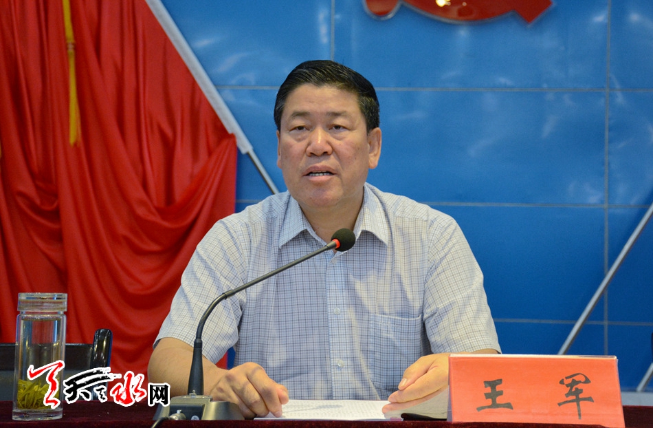 王军强调,贯彻落实省第十三次党代会精神,关键是要围绕深入贯彻习近平总书记“八个着力”重要指示精神,做好八个方面的工作。一要坚持“一产调结构、二产扩总量、三产强基础”,持续推进产业结构调整和提质增效,加快构建具有天水特色的产业体系。二要积极搭建创新平台,不断提高科技进步对经济社会发展的贡献率,推动经济发展由要素驱动向创新驱动转变。三要以农业供给侧结构性改革为主线,坚持用工业化、产业化的理念谋划发展农业,推动农村一二三产融合发展,促进农业增效农民增收。四要从讲政治的高度,大力开展精细精确精微的“绣花”式扶贫,抓细抓实“七个一批”举措,下功夫解决好脱贫攻坚中的贫中之贫、困中之困、难中之难问题,坚决打赢脱贫攻坚战。五要牢固树立“绿水青山就是金山银山”的发展理念,健全完善“八项机制”,加快实施“十大工程”,扎实推进大气、水、土壤污染防治“三大战役”,全面落实河长制责任体系,推动全市环境质量持续改善。六要统筹推进经济发展和民生改善,全力办好民生实事,让改革发展成果更多更好地惠及全市人民。七要积极创新和加强社会治理,努力抓好安全生产工作,高度重视防灾减灾工作,切实做好信访维稳工作,全力维护社会大局和谐稳定。八要把持续改进工作作风、推进全面从严治党,以严紧细实的作风保障各项决策部署落地见效,真正以经济发展的实际成效、项目建设的实际进度、城乡面貌的实际变化、人民生活的实际改善检验贯彻落实党代会精神的实际效果。