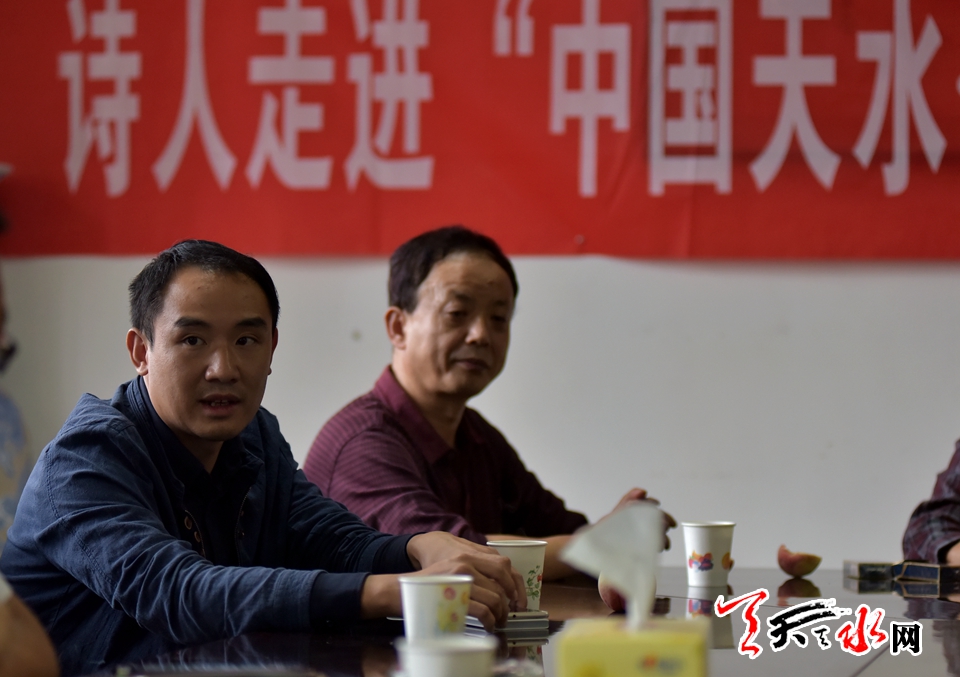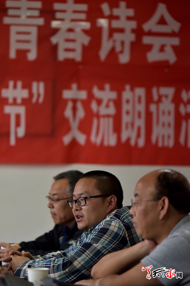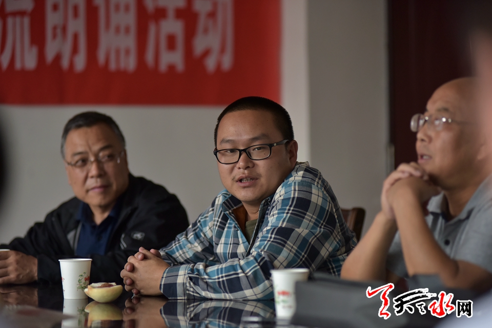 刚参加完 《诗刊》社第三十三届《青春诗会》的两位云南青年诗人胡正刚、张雁超莅临现场,就“中国天水·李杜诗歌节”的影响及创作环和创作方向作了交流发言。
