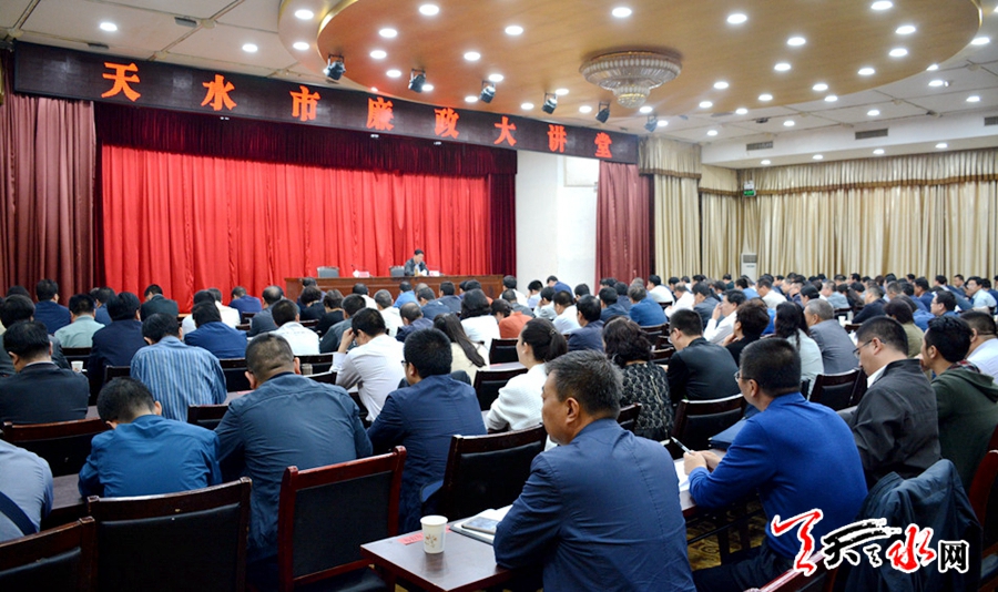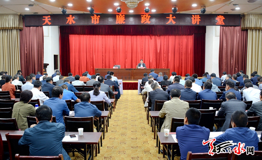 天天天水网讯【全媒体记者吴丽娜】8月30日下午,天水市2017年廉政大讲堂第三讲在天水迎宾馆开讲,市委副书记、市长王军作了题为《深入推进全面从严治党,持续加强政府系统党风廉政建设》的主题宣讲。王军强调,各县区政府、市政府各部门、单位党员领导干部要把思想和行动统一到中央和省、市的决策部署上来,认真履行全面从严治党政治责任,坚定不移把党风廉政建设和反腐败斗争推向深入,保持惩治腐败高压态势,努力打造为民务实的清廉政府。