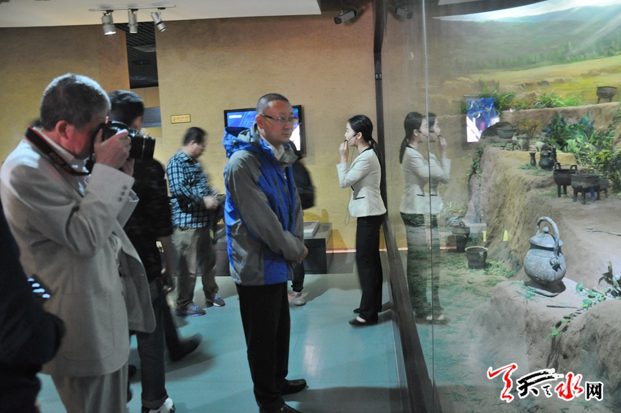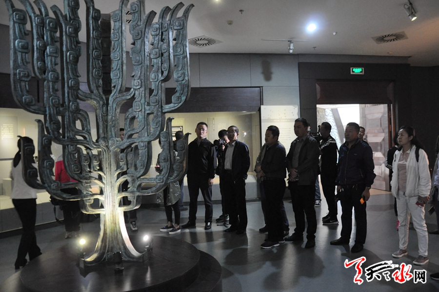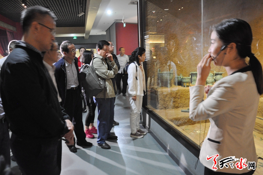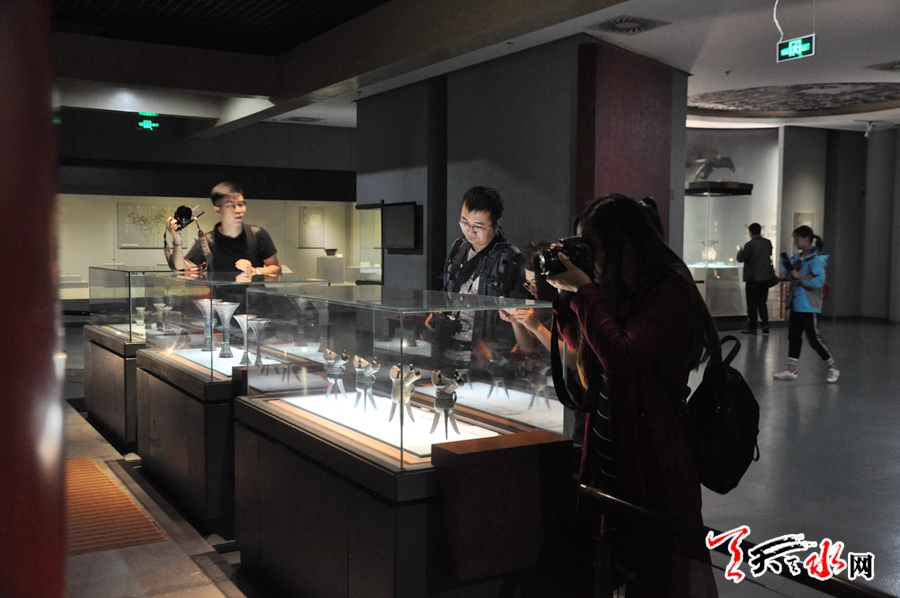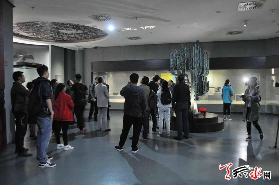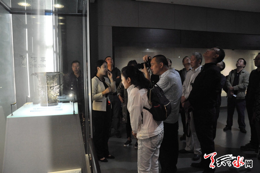 在参观中,采访团一行详细聆听讲解员的介绍,认真了解不同时期、不同风格青铜器的形态、作用以及它所蕴函的文化底蕴。数量庞大,做工精品的青铜器精品和铭文所显现的周秦文化深深地吸引着采访团的每一位成员,他们用镜头记录着每一精品。