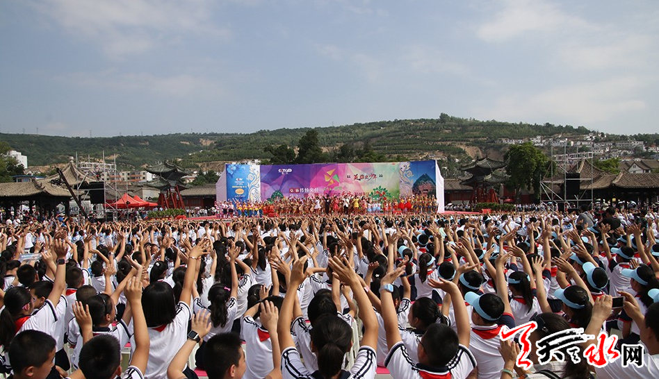 当天早上,伏羲广场,人头攒动,好不热闹!舞蹈《羲皇故里·天水娃》拉开了活动的序幕。台上小朋友们活力四射,随着舞曲不断变化舞步,台下掌声此起彼伏,一片欢声笑语。