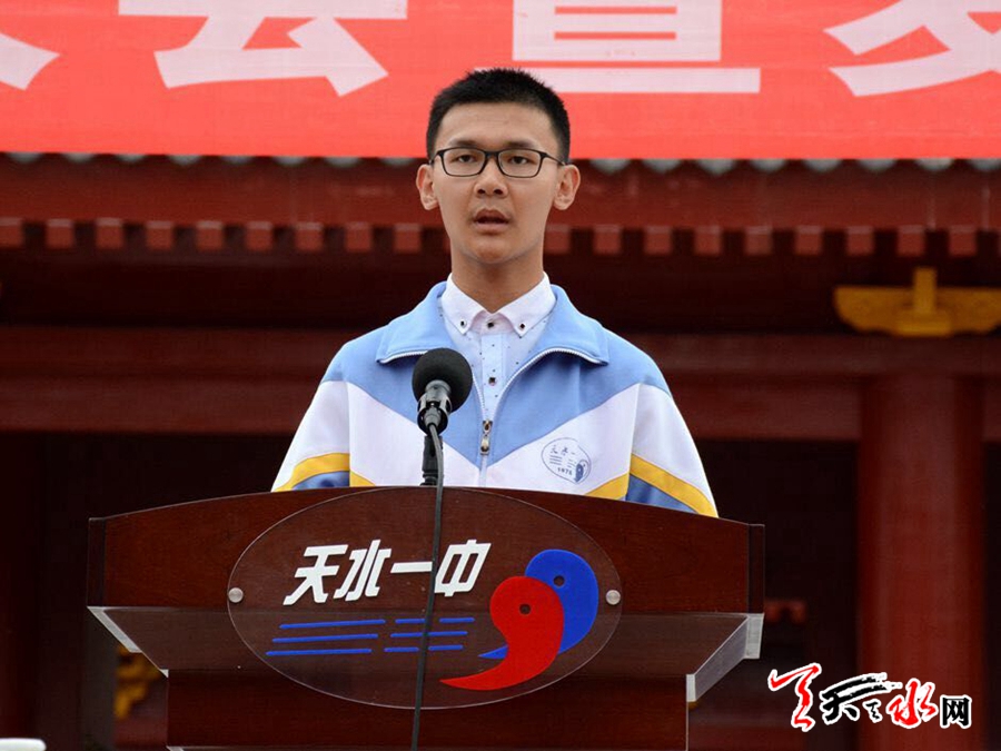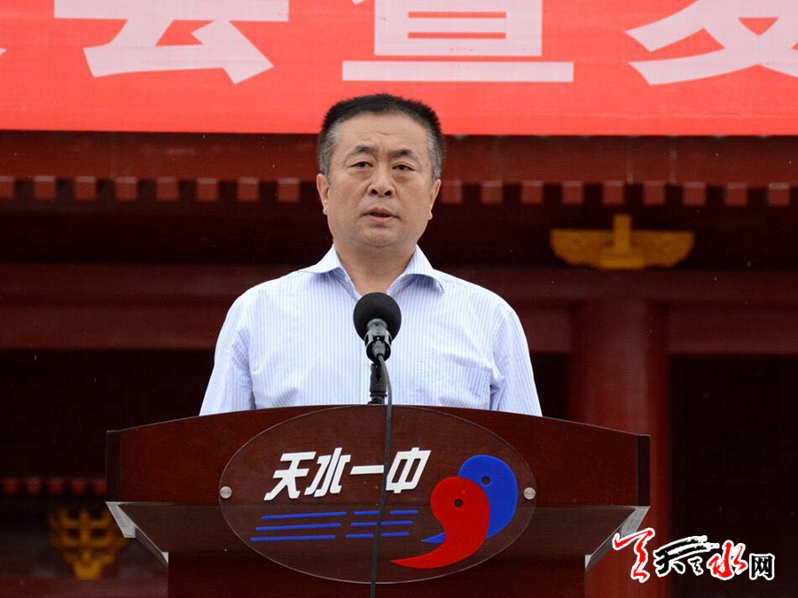 ▲市委常委、秘书长、政法委书记蒋晓强宣布天水市一中麦积校区开学
