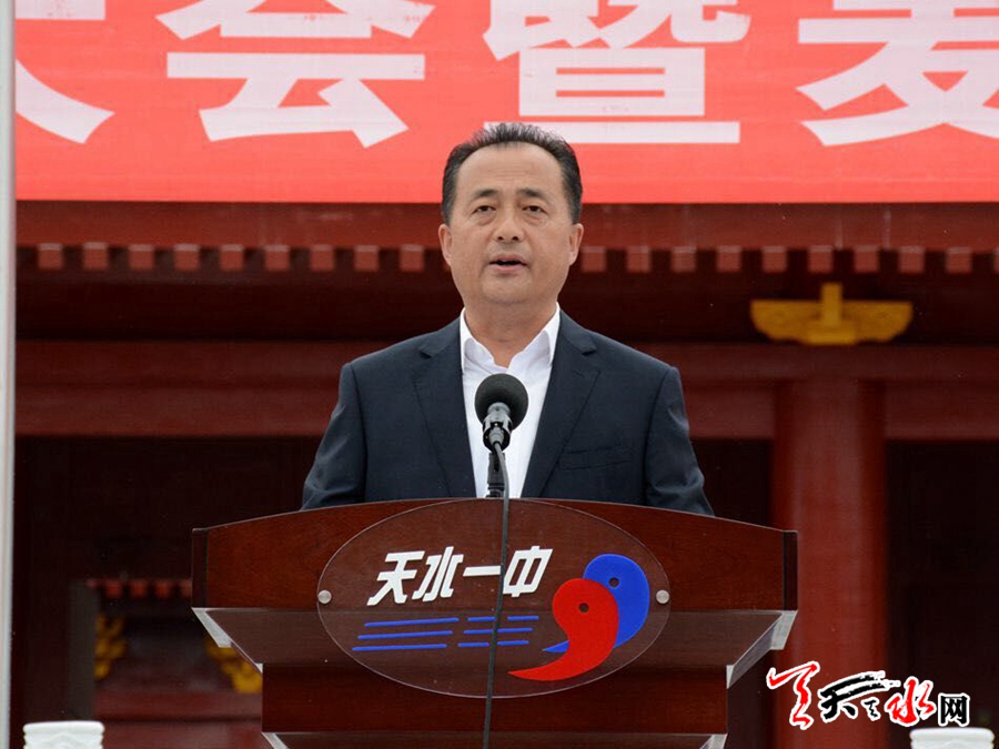 宫辉在开学典礼上讲话。他说,天水市一中要创新教育理念、管理体制和服务运营模式,实现由单一校园办学向一校多地办学的重大转变。要更加注重提升教育教学质量,在改革创新的诸多领域积极充当全市乃至全省教育的排头兵和领头雁;要团结一致,凝聚起共同建设“标准化、现代化、特色化”西部名校的强大合力;要以智慧城市建设为基础,让最新的教育教学技术和手段在天水一中得到广泛应用;要以教为本、以学为要、以校为荣,向着“甘肃领先、西北一流、全国知名”的中国现代特色中学的目标不懈努力。