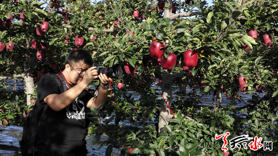 在麦积区花牛镇南山万亩果园基地,红彤彤挂满枝头的苹果,均匀的态形和艳丽的色泽让记者十分惊叹,个个举起手机、相机和“花牛”合影。
