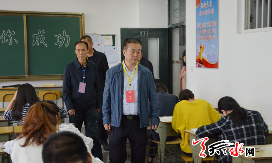 天天天水网讯【记者徐媛】9月16日,2017年国家司法考试天水考区在天水一中开考。当天,市委常委、秘书长、政法委书记蒋晓强巡视了考场。