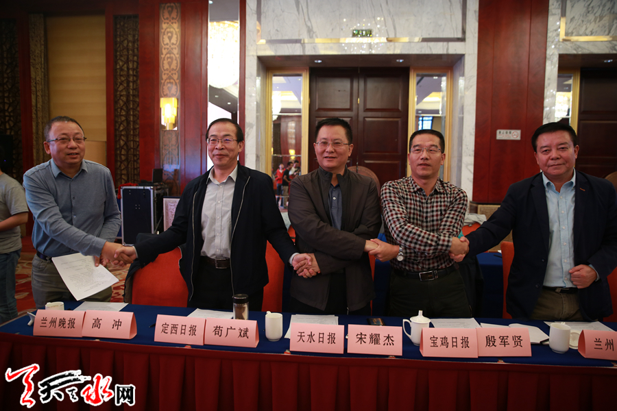 天天天水网讯【记者杨旭】9月18日,宝兰高铁沿线城市媒体宣传联盟集中采访活动座谈会在兰州举行,标志着本次集中采访活动圆满落幕。会上,兰州、宝鸡、定西和天水四市报纸、广播电视、网络媒体分别签署了合作协议;宝鸡市委宣传部负责人向我市宣传部负责人移交了宝兰高铁沿线城市媒体宣传联盟采访团团旗,下次宝兰高铁沿线城市媒体宣传联盟采访活动将由我市主办。