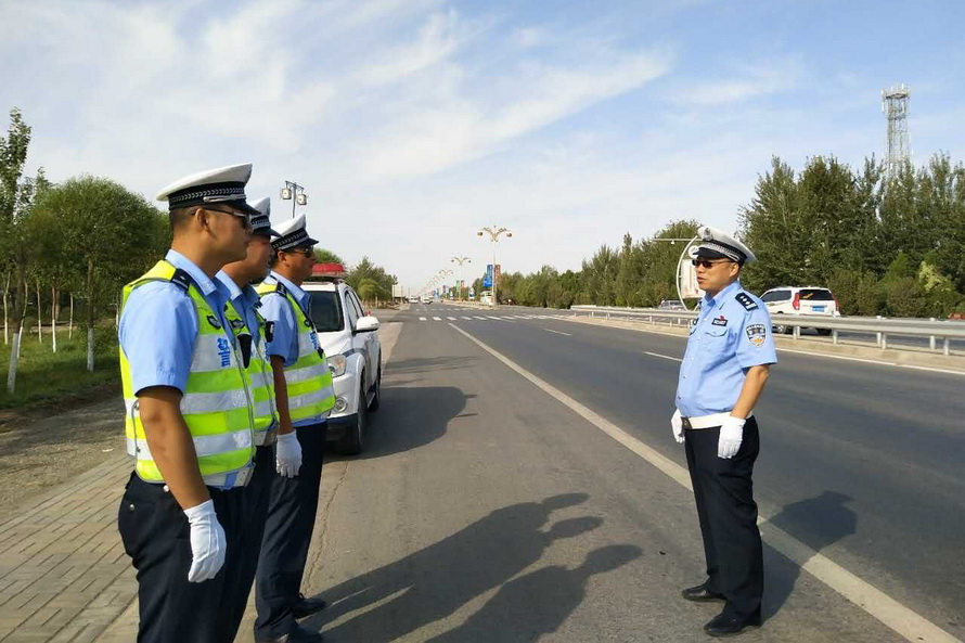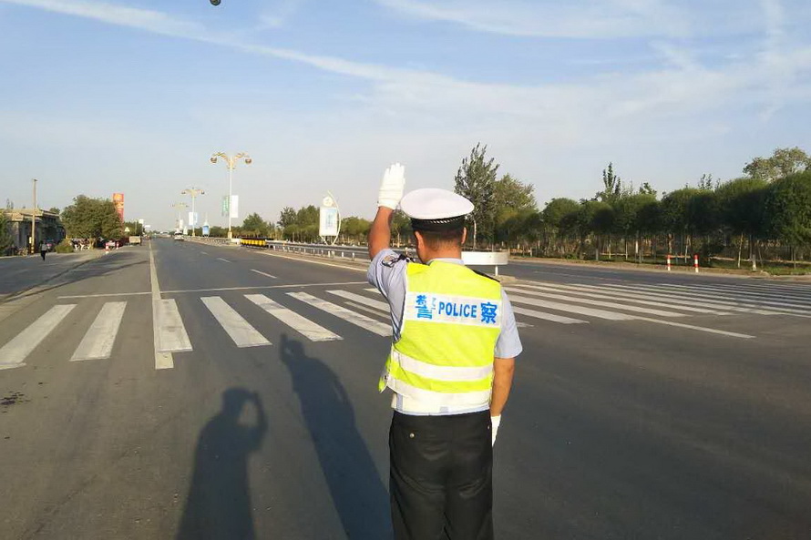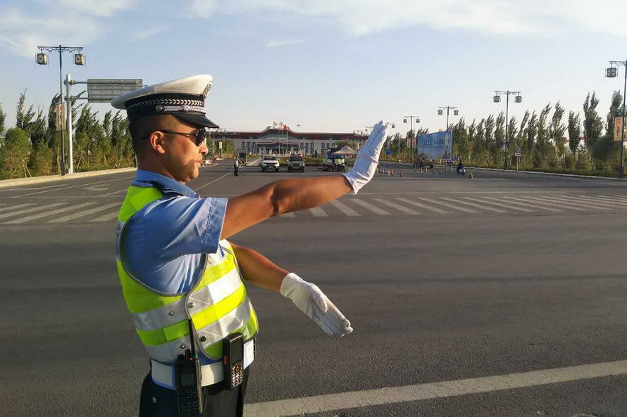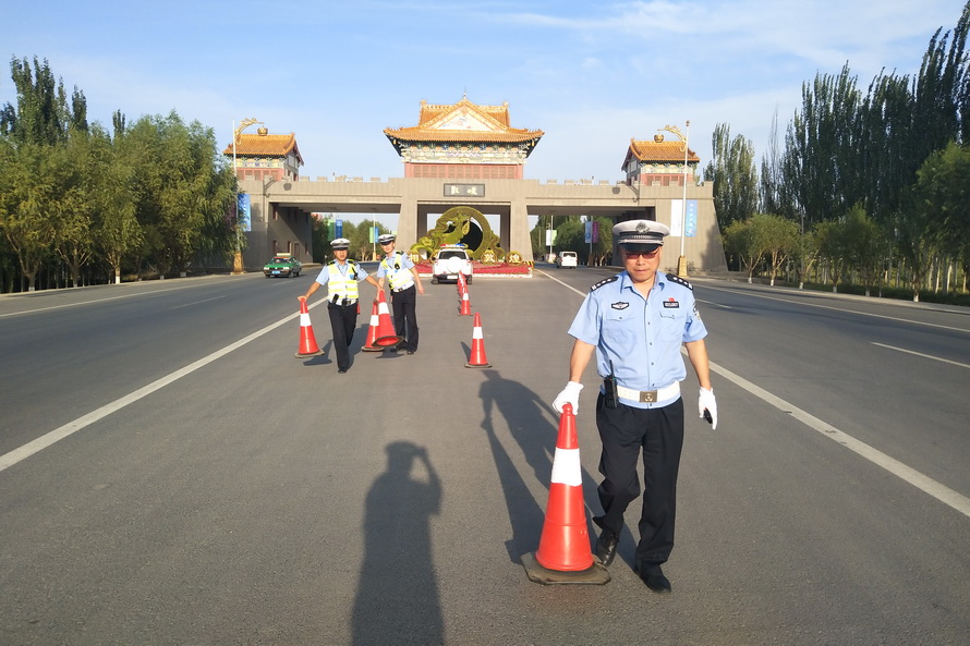 演练当日,李静宏同志带领3个勤务小组的9名特勤队员准时到达指定地点,按照文博会交通安保组调整后的勤务方案,在敦煌飞机场正门口、火车站进出口、314省道老收费站西路口执勤点部暑警力。全体队员严格遵守道路执勤执法工作规范,统一着装、带齐装备,经摆放反光锥桶、检查隔离设施后,快速进入各自执勤岗点,在当地交通劝导员的支持配合下,全面开展特勤保障工作。特勤队员克服昼夜温差大、日间紫外线强、夜间视距差等实际困难,及时清理所辖道路两侧乱停乱放车辆,积极制止电动车、摩托车违法载人和逆向行驶,严格管控货车、农用车进入城区,并引导社会车辆驶出文博车道通行,以坚实的工作作风圆满完成了后两次演练的各项科目内容,为届时做好今年敦煌文博会“一会两坛”期间各项勤务工作奠定了基础。