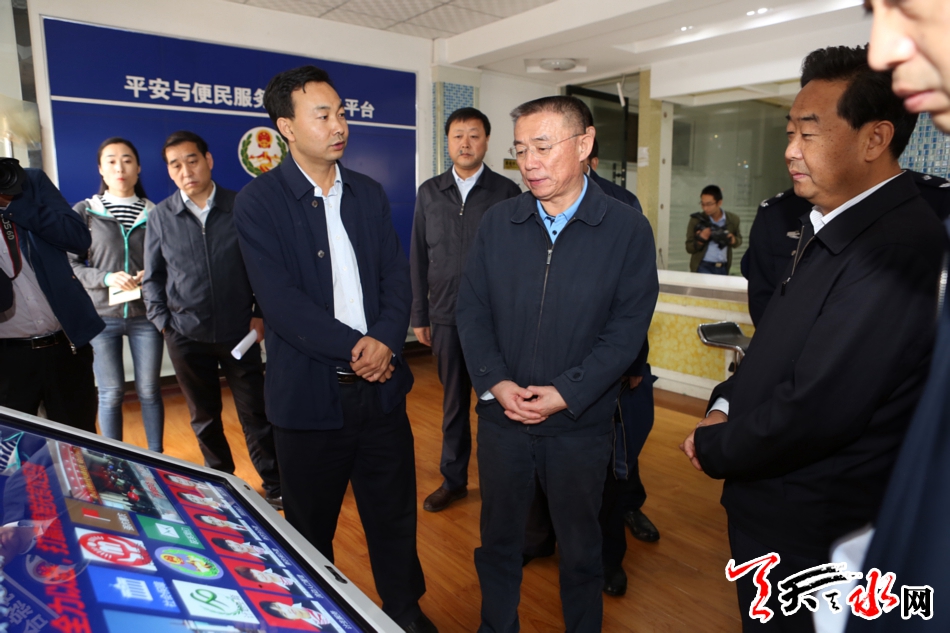 在武山县公安局、武山县洛门镇司法所、甘谷县信访局,王锐观摩了公安指挥系统和综治信息平台运行情况,听取了当前信访、维稳、安保等工作汇报。他强调,要把维护稳定作为重要政治任务,坚持属地管理,突出问题导向,树立底线思维,扎实开展矛盾纠纷排查化解,切实加强对重点领域、重点行业、重点人员、重点时段的管控力度,全面落实信访重点人员稳控措施,依法严厉打击违法犯罪活动,坚决防止发生重大安全事故,努力为党的十九大胜利召开营造安全稳定的政治和社会环境。