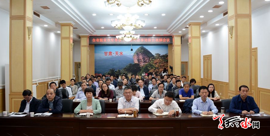 天天天水网讯【记者何郁】全省脱贫攻坚帮扶工作暨先进事迹报告视频会9月25日在兰州召开。市领导蒲军、李晓东、王晓琴、唐宏伟在天水分会场收听收看会议。