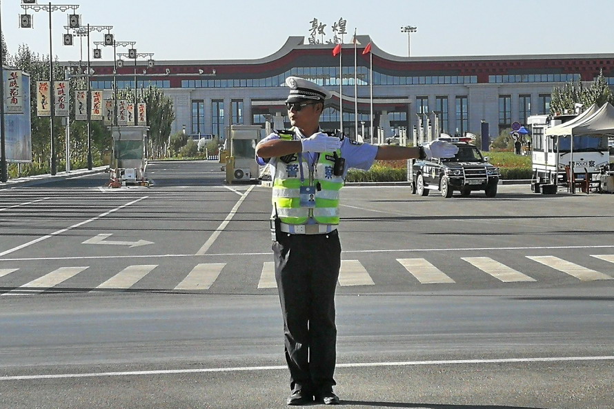 根据敦煌文博会交通安保组制定的勤务工作方案要求,结合所划分的高速公路收费站沿314省道经飞机场、火车站至老收费站责任路段交通管理实际,为确保到机场接送参加“一会两论坛”的各级领导、各国来宾、各地代表车队行车安全、畅通,9月16日起,天水市公安局交警支队副支队长、特勤队临时党支部书记李静宏同志带领3个勤务小组的9名队员,在全面完成9月6日开始的第一阶段12小时勤务交通秩序集中整治工作任务后,提前2日全员投入第二阶段15小时勤务道路交通安全保障工作。