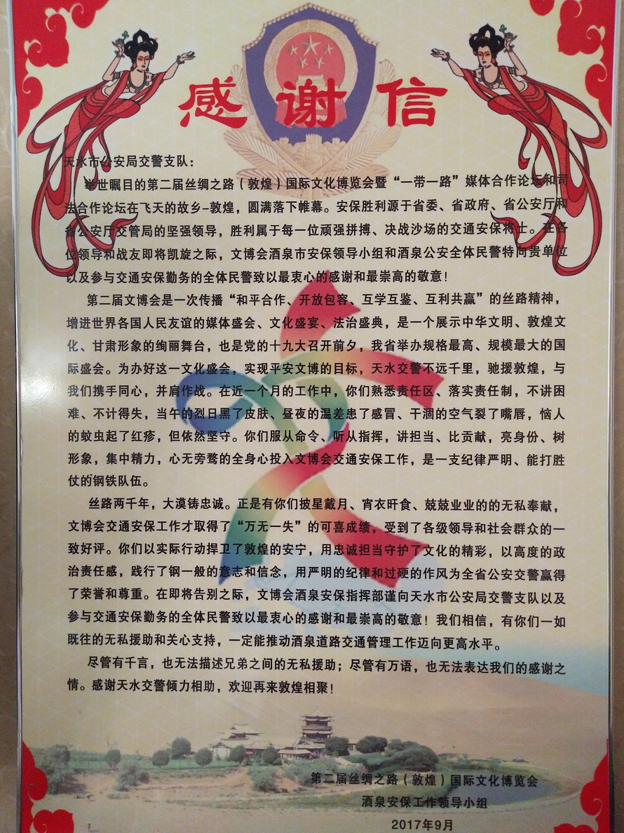 天水公安交警特勤队圆满完成敦煌文博会交通安保任务