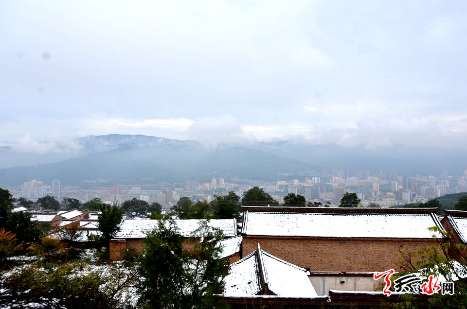 忽如一夜“冬风”来,千树万树梨花开。进入十月,古城天水层林尽染,秋色已浓。伴随着连日秋雨和“断崖式”的降温,清秀柔美、文弱温溢的天水迎来了多年未见的秋雪覆裹的别样景致。
