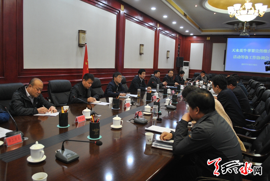 天天天水网讯【记者陈娟】10月10日下午,副市长霍卫平主持召开天水花牛苹果宣传推介活动筹备工作协调会。