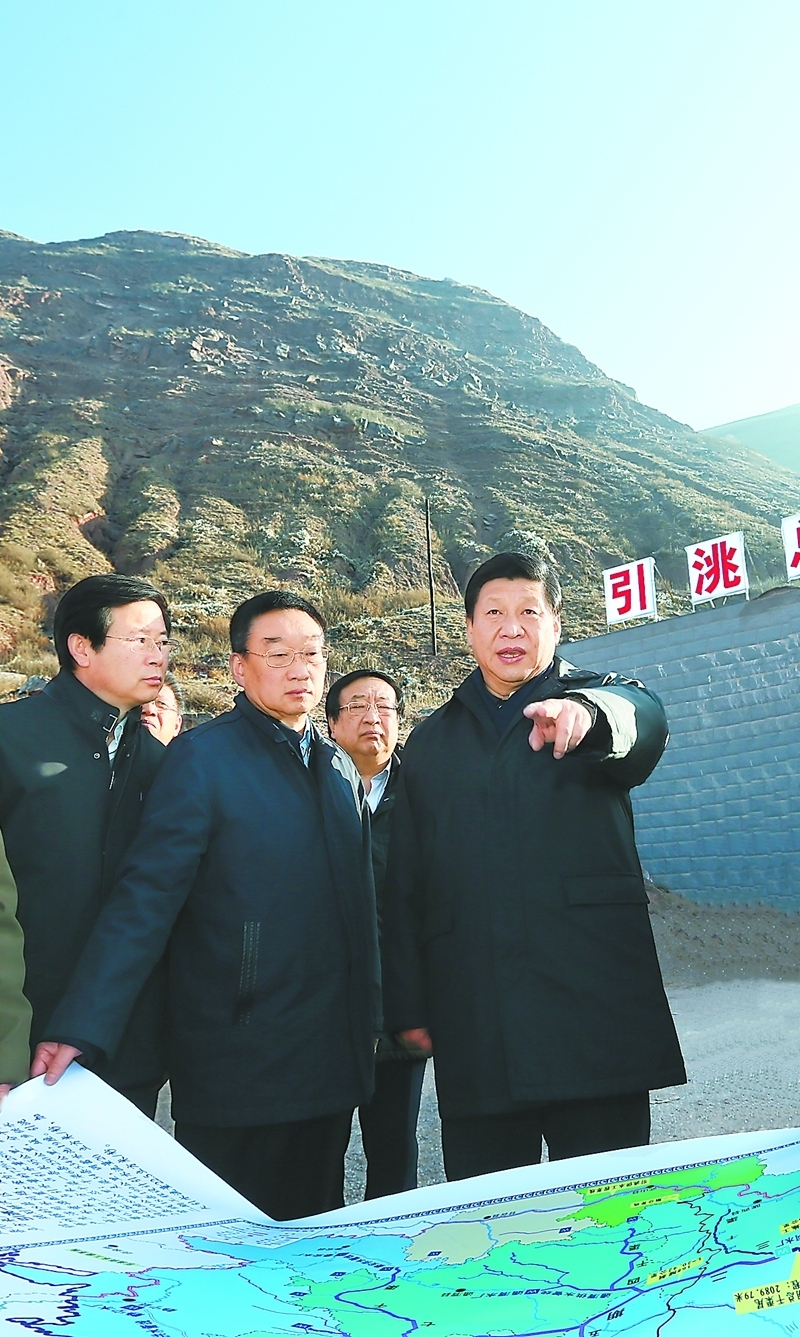 2013年2月3日,习近平总书记专程来到渭源县上湾乡,实地考察引洮供水一期工程建设情况。 新华社记者 兰红光