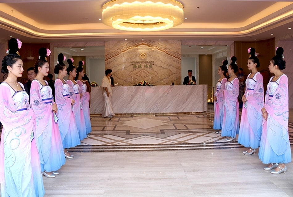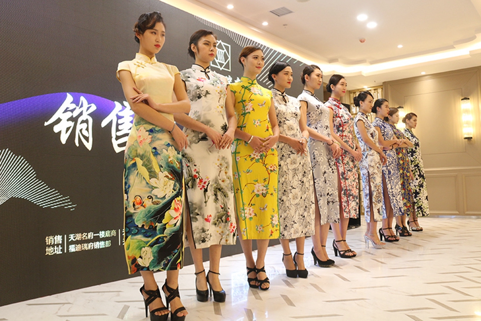 ▲传统旗袍展示彰显新中式豪宅典范
