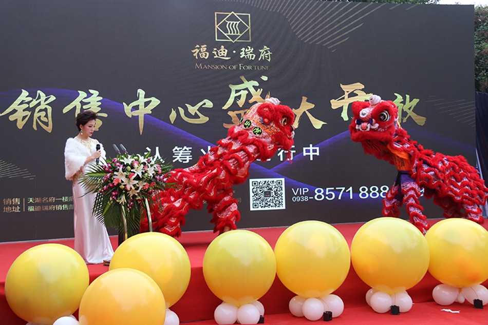 14日上午10点整,随着气势磅礴的秦王点兵鼓乐,销售中心揭开了神秘的面纱。福迪地产安总随后进行了精彩的温馨而简短的答谢致辞。舞动的狮队、震耳的鼓声,五重开门炮礼体现出福迪·瑞府一直秉持的礼制之致。当领导与嘉宾一同为狮王点睛的那一刻,天放异彩,掌声雷鸣。舞狮仪式结束后,来宾纷纷进入销售中心参观指导。古琴绕梁迎客来,好礼相送待君归。工作人员热情招待着每一位来宾,职业顾问详细解答着每一个疑问。一句关心,一声问候,一杯香茗,无论是空间布置还是现场服务,福迪·瑞府都做到了大家礼遇,宾至如归。