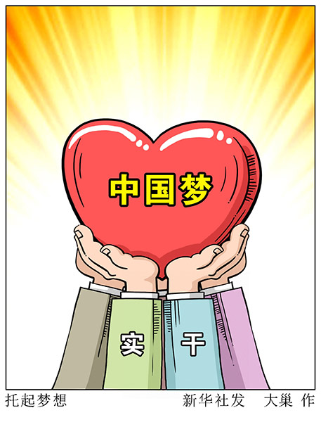 资料漫画:托起梦想 新华社发 大巢 作