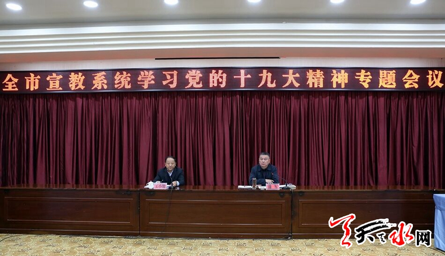 会议学习了党的十九大精神;秦州区、天水日报社、市科技局、市教育局、市文化和旅游局有关负责人作了交流发言。