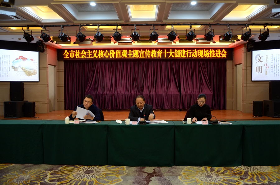 天天天水网讯【记者童强】10月25日,在党的十九大胜利闭幕之际,全市社会主义核心价值观主题宣传教育十大创建行动现场会在麦积区召开,学习宣传党的十九大精神,认真贯彻落实全省社会主义核心价值观主题宣传教育十大创建行动现场会议精神,安排部署我市持续开展社会主义核心价值观主题宣传教育十大创建行动,推动全市社会主义核心价值观观培育实践工作不断向广度和深度拓展。