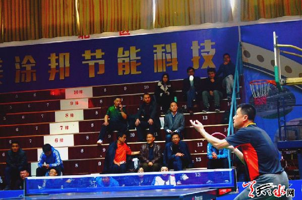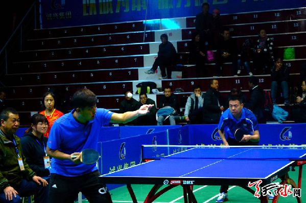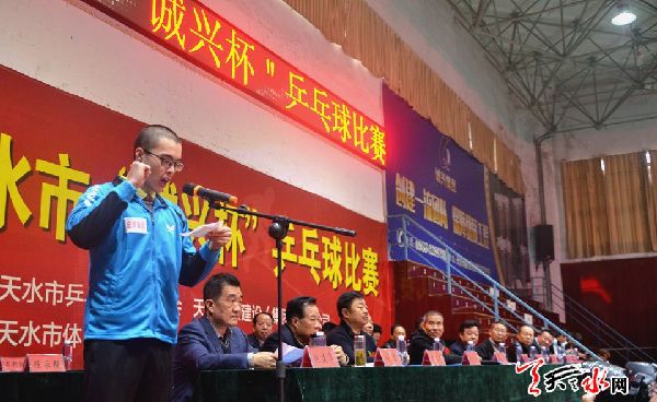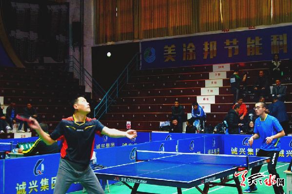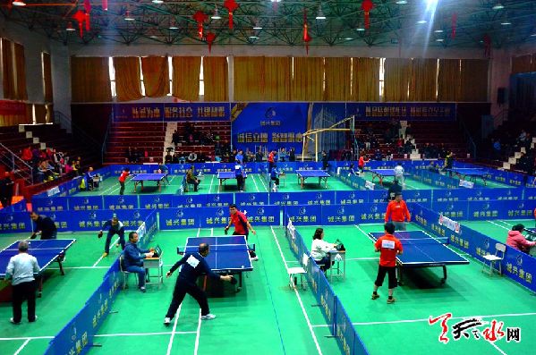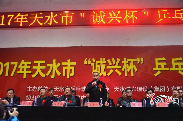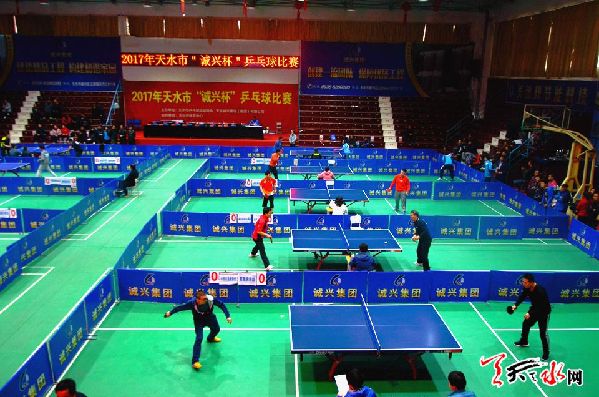 天天天水网讯【张文都】10月28日,2017年天水市“诚兴杯”乒乓球赛在天水体育中心南山训练馆鸣锣开赛。来自全市35支参赛球队150多名乒坛高手同台竞技,比拼球技,享受运动带来的快乐。