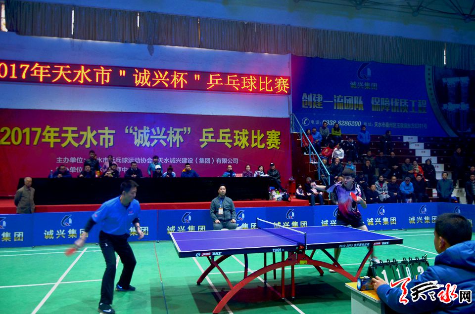 天天天水网讯【记者 张文都】10月29日,为期两天的2017年天水市“诚兴杯”乒乓球赛在天水体育中心南山训练馆完成各项赛程,圆满落下帷幕。来自全市35支代表队150多名乒坛老将经过两天激烈鏖战,各项奖项名花有主。诚兴建设(集团)有限公司队分别摘得男女团体赛冠军。