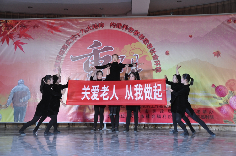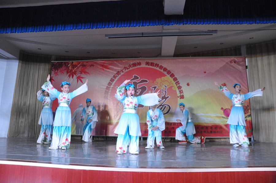天天天水网讯(记者 刘晓亚)日前,天水市举办由市老龄委、市民政局、老龄办联合主办,市社会福利院和儿童福利院共同承办的2017“重阳节”慰问演出,充分彰显了尊老、敬老、孝老政策体系和社会环境。