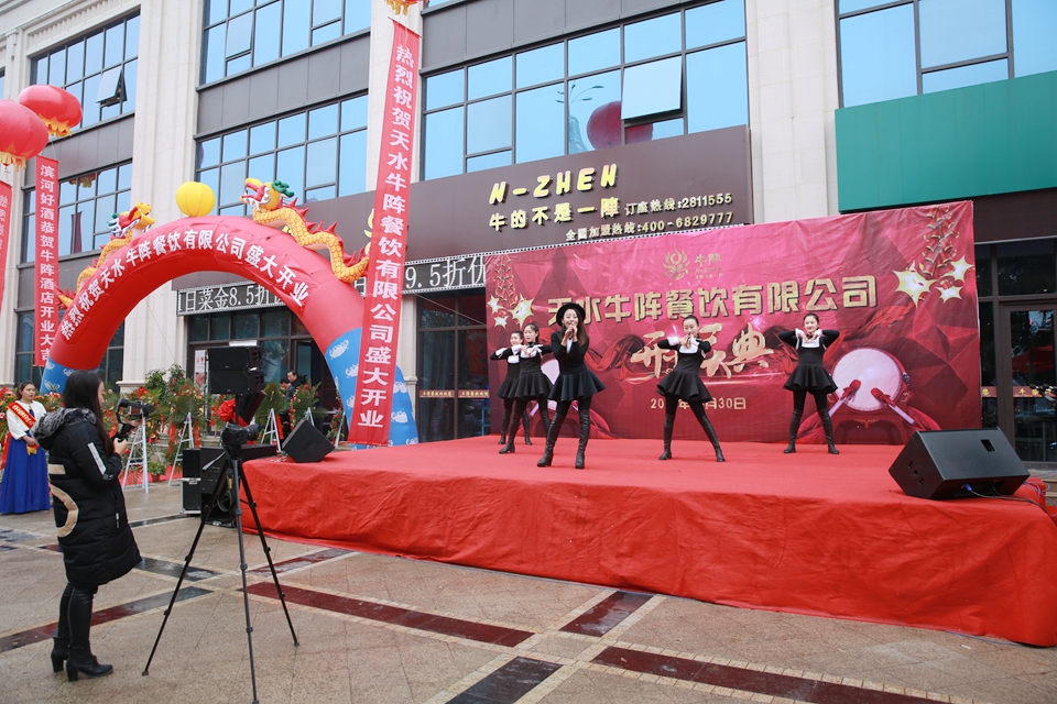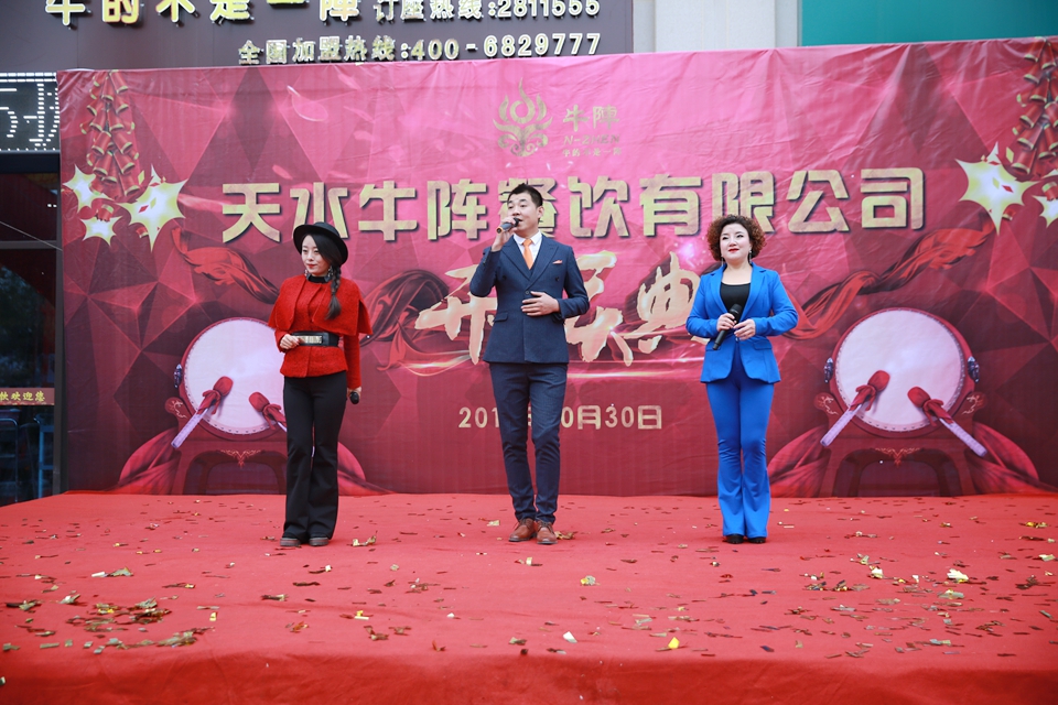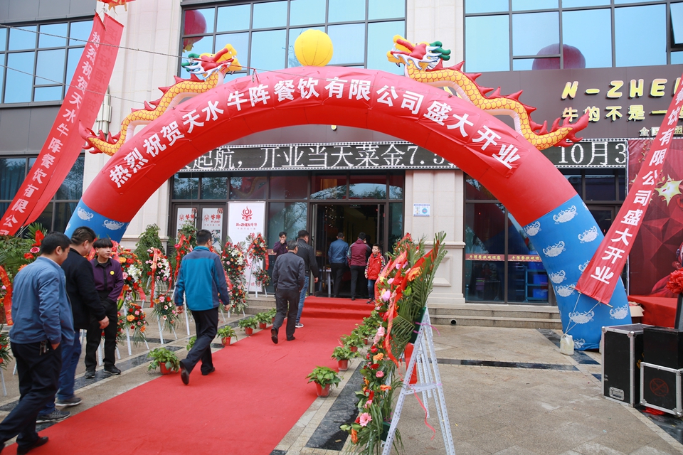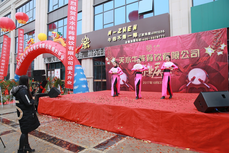 11时58分,在山东牛阵总部领导、嘉宾和群众的热切期待中,天水牛阵餐饮有限公司开业典礼正式拉开帷幕。伴随着精彩的开场舞,天水牛阵餐饮有限公司总经理王玉洁上台并发表致词,作为一家新进天水的餐饮品牌,她会和她的团队一起努力,为用餐者提供精美的菜肴、优雅的环境、一流的服务,将牛阵这个品牌在天水做大做强。
